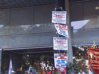 Este lunes, 12 de Julio de 2010, realizamos un mitin frente a las instalaciones de la Secretaría de Energía encabezada por Georgina Kessel, de descendencia alemana por cierto en donde exigimos que se instalara ya la mesa de negociación para que se nos otorgue el patrón sustituto. Posteriormente realizamos una gran marcha desde ese lugar, (casi frente al World Trade Center, Ciudad de México) hacia el SME a lo largo de Insurgentes.