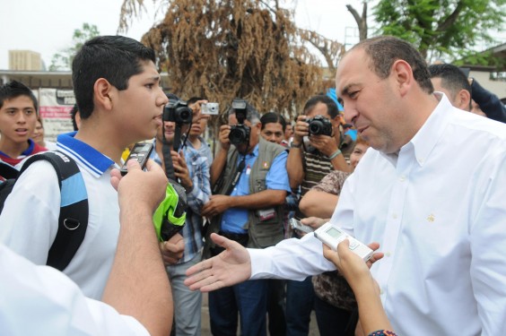 El joven de 14 años pidió que “regresaran el dinero que se robaron”, por lo que el mandatario se acercó de nuevo al estudiante y lo cuestionó.